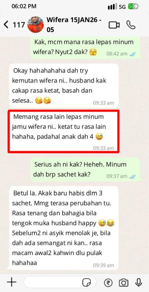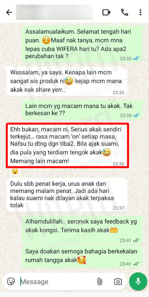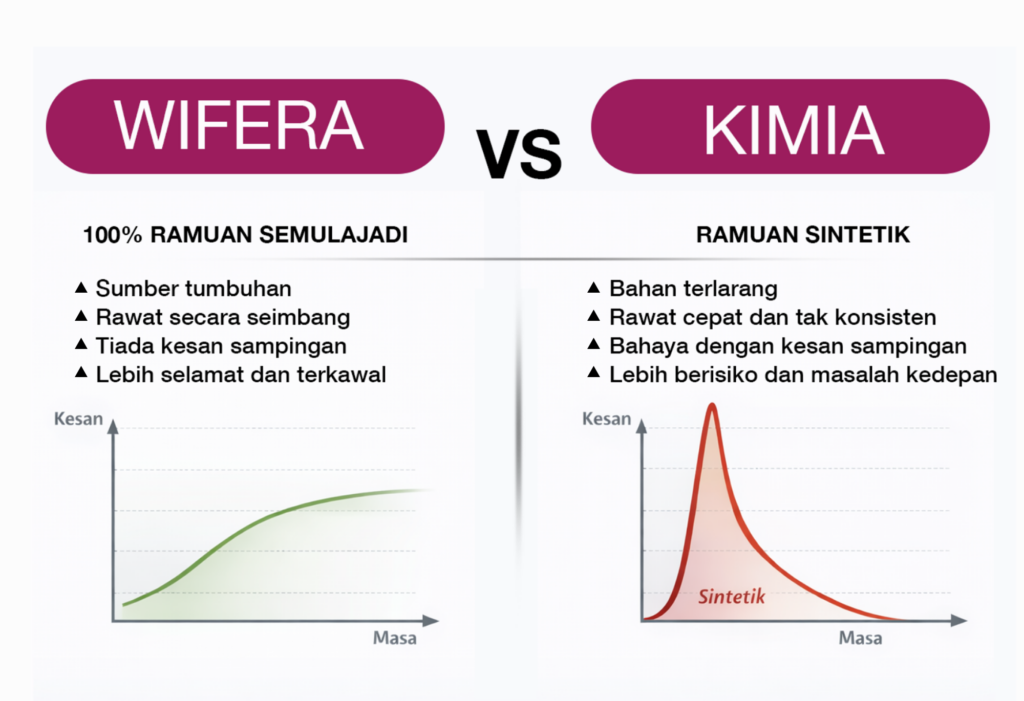 Rawatan herba WIFERA menunjukkan kesan beransur, stabil dan konsisten dari semasa ke semasa. Berbeza dengan ubatan kimia yang memberi lonjakan cepat tetapi kurang berpanjangan.