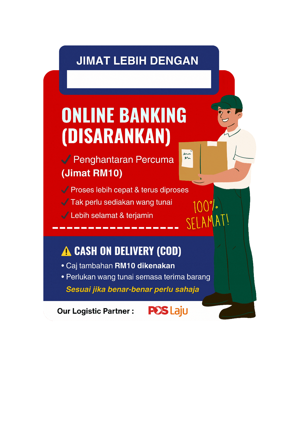 Postage Percuma Ke Seluruh Malaysia Termasuk (Sabah & Sarawak) Tidak Termasuk COD