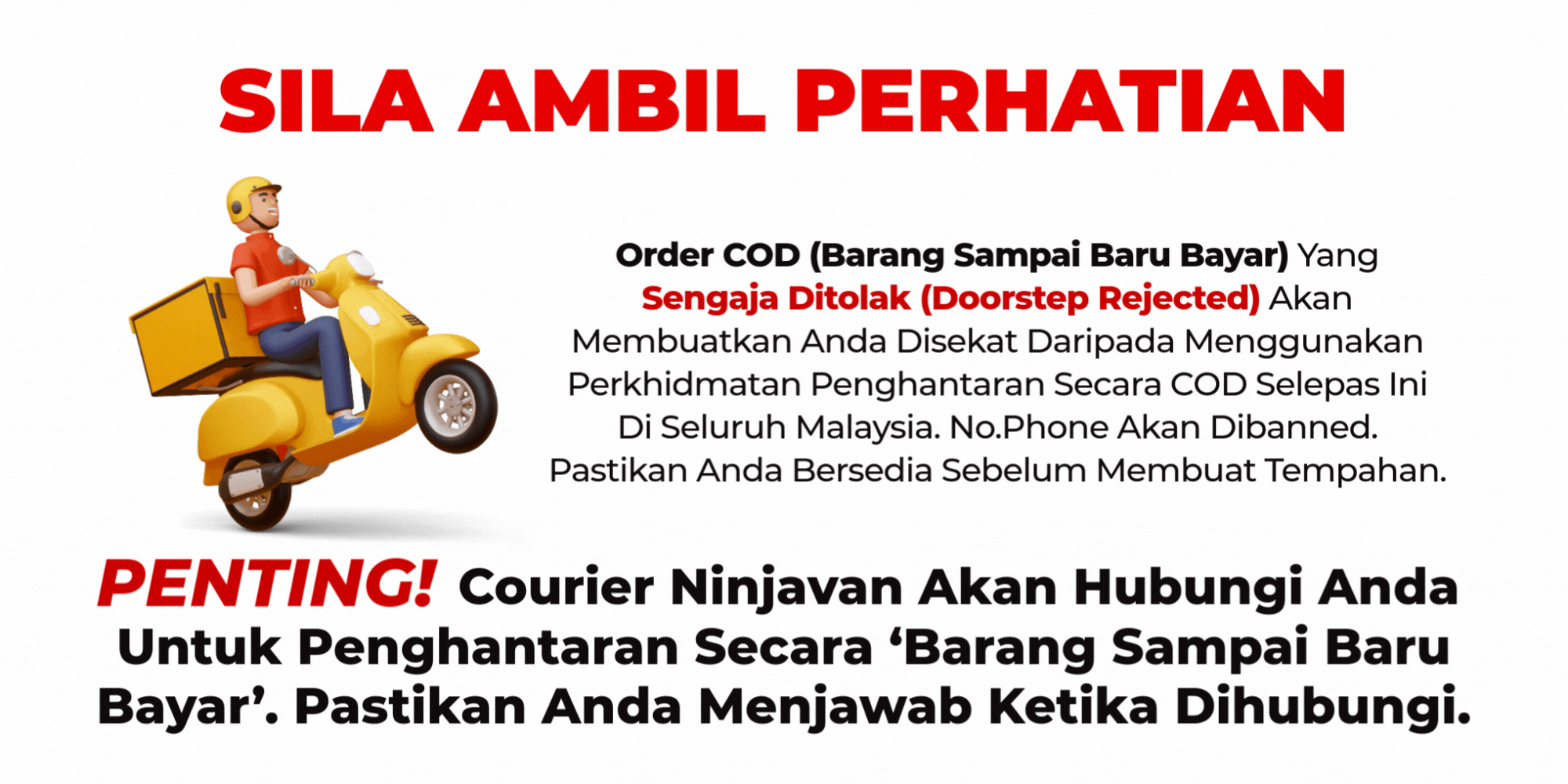 ✅ Penghantaran COD oleh kurier NINJAVAN ✅ Sila Sediakan Wang Secukupnya Untuk Dibayar Pada Rider